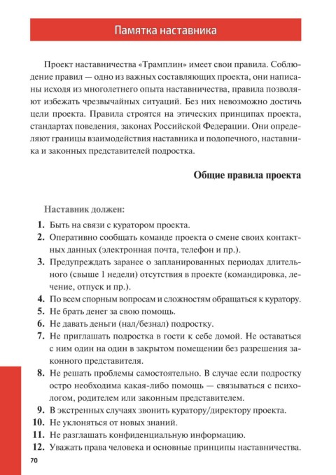 12. Уважать права человека и основные принципы наставничества.