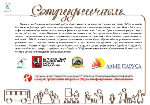 Специалисты фонда разрабатывают и распространяют материалы и социальную рекламу по теме «Дети с ВИЧ», ведут