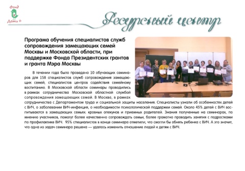 с ВИЧ, о заболевании ВИЧ-инфекция, о необходимости психологической поддержки семей. Около 45% детей с ВИЧ вос-