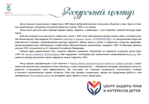 ных целей фонда- улучшение отношения общества к детям с ВИЧ и их семьям.